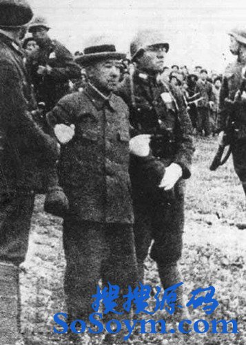 • 南京大屠杀刽子手谷寿夫被执行枪决(图中所示的编号是押送谷寿夫的三名国军士兵。)